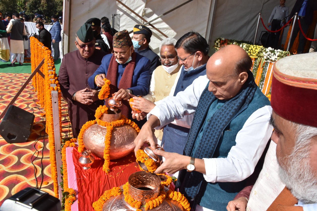 केन्द्रीय रक्षा मंत्री श्री राजनाथ सिंह ने शहीदों को नमन करते हुए कहा कि हमारी सांस्कृतिक परम्परा है कि जो देश के लिए अपनी जिंदगी न्यौछावर करते हैं, उनको देवतुल्य माना जाता है। उत्तराखण्ड, देवभूमि, तपोभूमि, वीरता और पराक्रम की भूमि है। प्रधानमंत्री नरेंद्र मोदी जी के सपनों के अनुरूप उत्तराखण्ड में पांचवा धाम सैन्यधाम बन रहा है। सैन्यधाम में शहीद सैनिकों की आंगन की पवित्र मिट्टी लाई गई है। उत्तराखंड सरकार से जो अपेक्षा थी, उसके अनुरूप सैन्य धाम बनाने का कार्य चल रहा है। उन्होंने कहा कि स्वर्गीय अटल बिहारी वाजपेयी जी ने इस राज्य को अलग राज्य का दर्जा दिया था।
