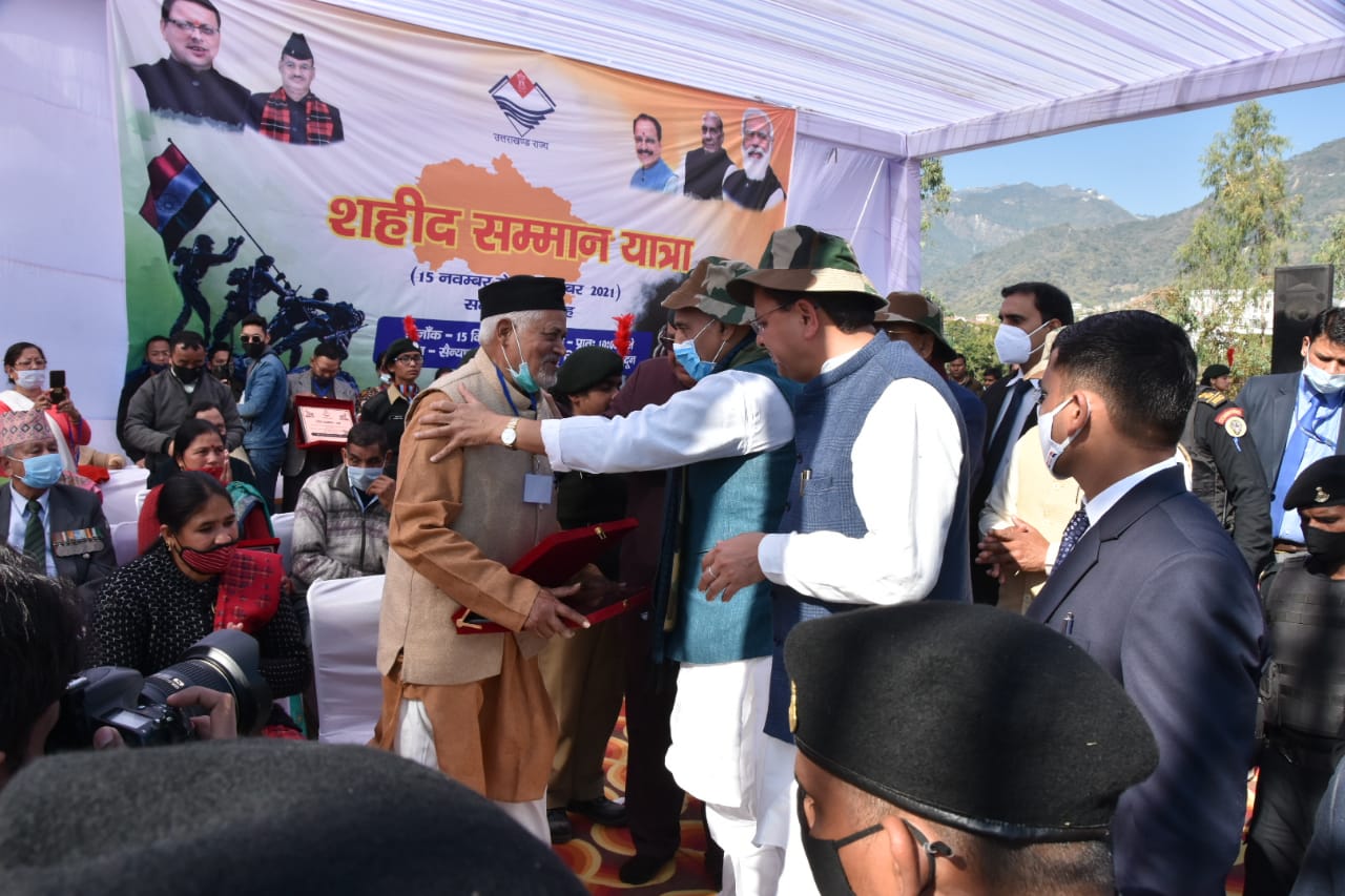 सैनिक कल्याण मंत्री श्री गणेश जोशी ने कहा कि देश की सेना में हर पांचवा सैनिक उत्तराखण्ड से होता है। 63 करोङ रूपए की लागत से भव्य सैन्य धाम का निर्माण किया जा रहा है। 15 नवम्बर से 15 दिसम्बर तक एक माह तक शहीद सम्मान यात्रा का आयोजन किया गया। प्रदेश में 1734 शहीदों के घरों से पवित्र मिट्टी एकत्र की गई। इस पवित्र मिट्टी का उपयोग सैन्य धाम में किया जाएगा। हम किसी शहीद को वापिस नहीं ला सकते, परंतु शहीदों का सम्मान और उनके परिवार की देखभाल करना हमारा परम दायित्व है। राज्य सरकार इस दायित्व को पूरी निष्ठा से निभा रही है। राज्य सरकार शहीद सैनिकों के परिवार के एक सदस्य को सरकारी नौकरी में समायोजित कर रही है। सैन्य सम्मान राशि में कई गुना वृद्धि की है। प्रधानमंत्री जी ने सैनिकों की वन रैंक वन पेंशन की बङी मांग को पूरा किया।