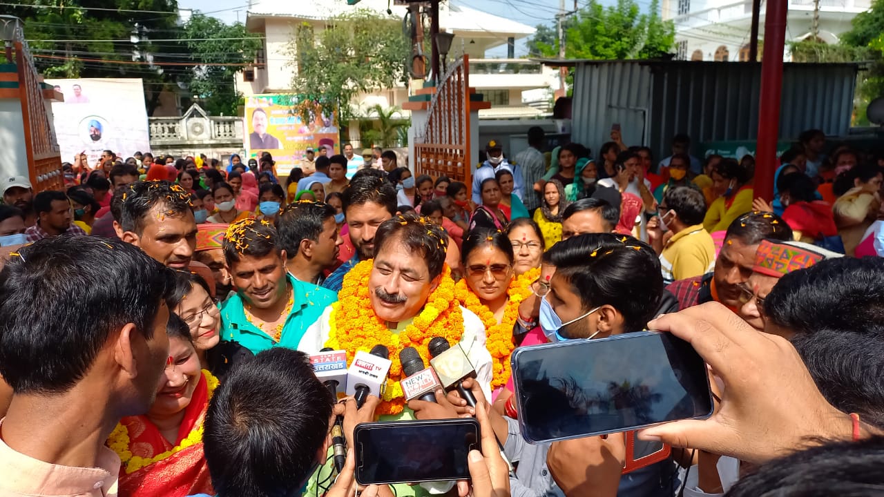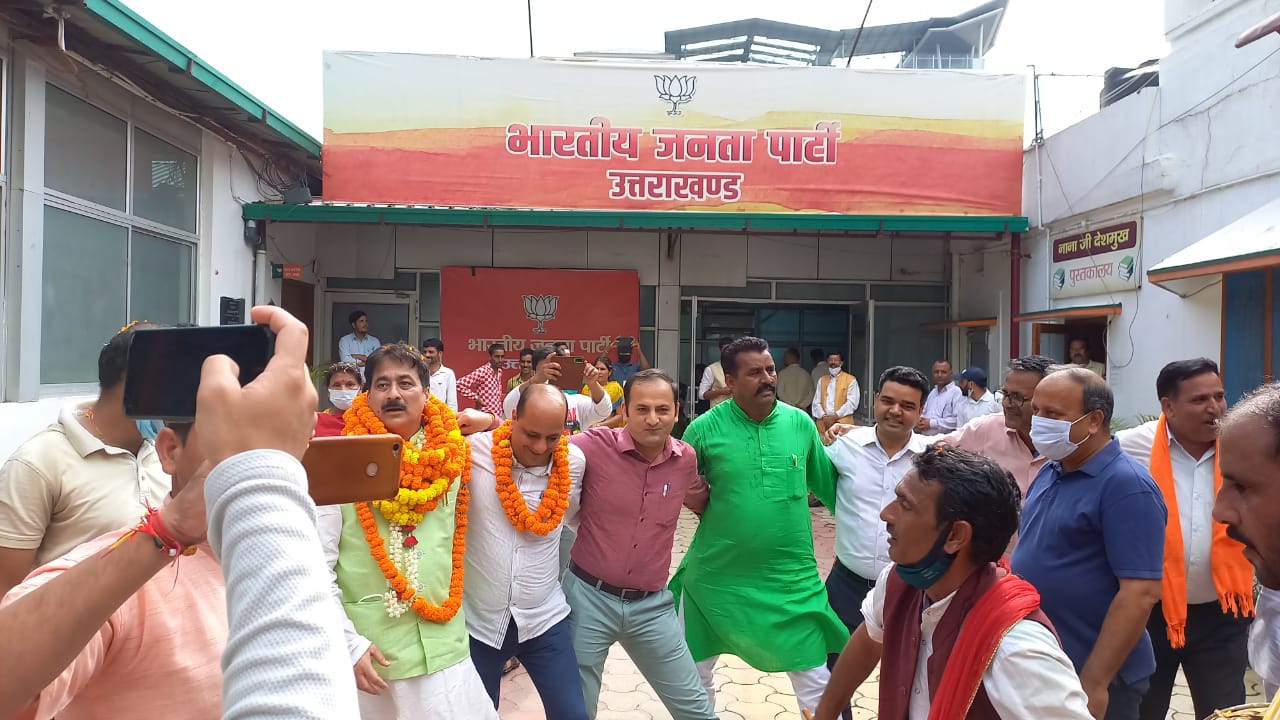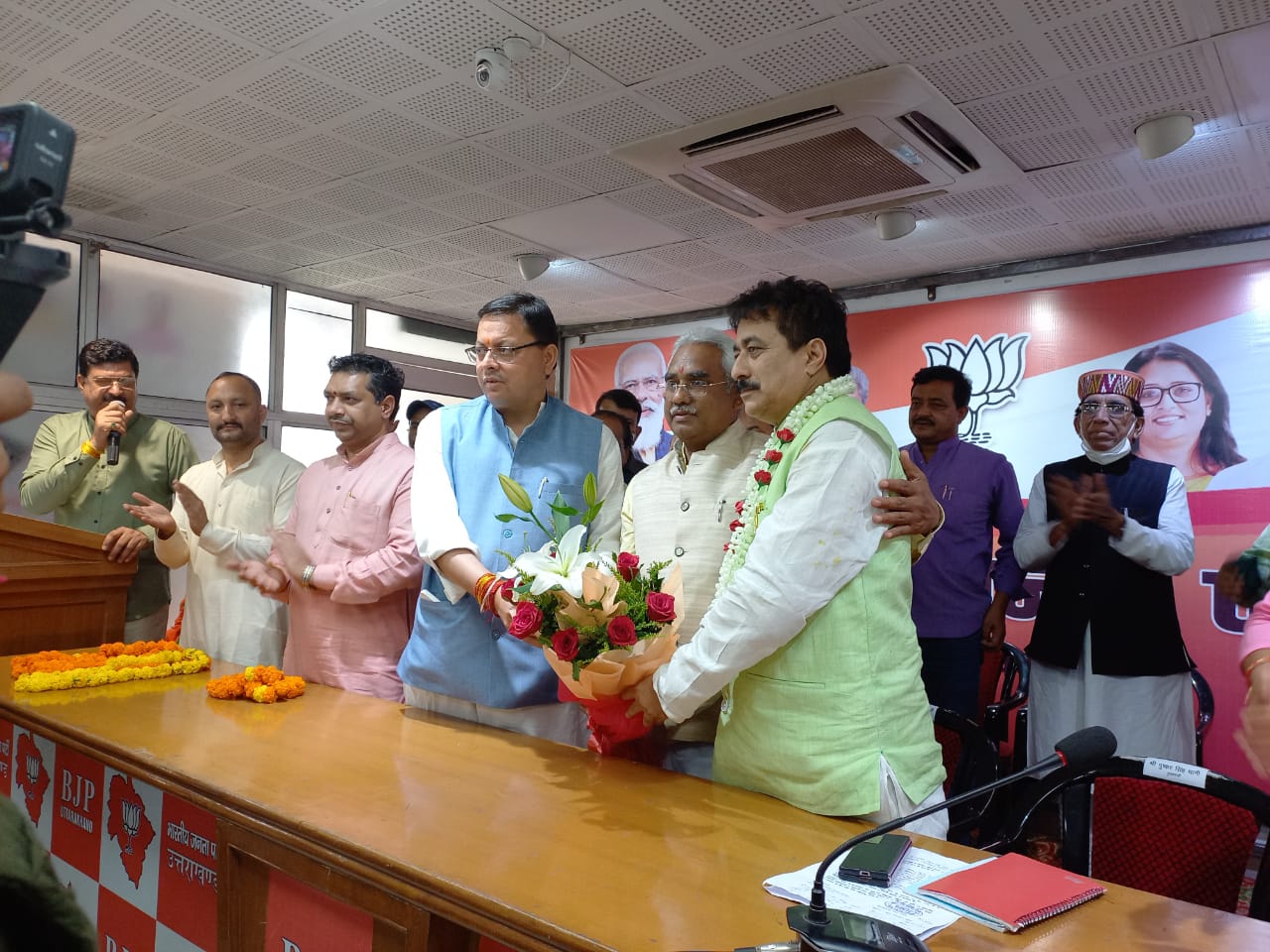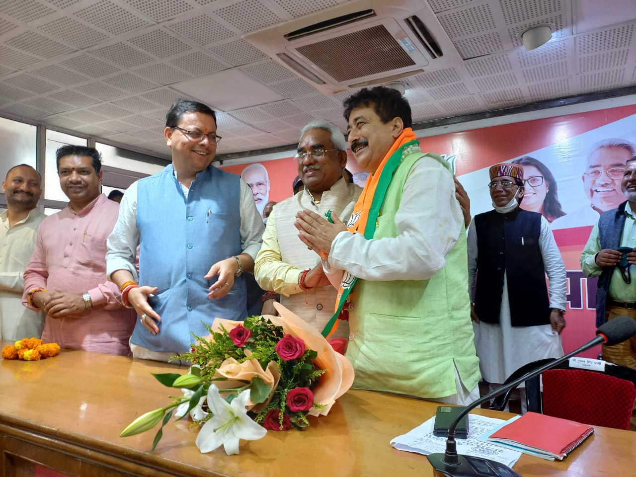 भाजपा में आए पुरोला के कांग्रेस विधायक राजकुमार के साथ सैकड़ों कार्यकर्ताओं ने प्रदेश अध्यक्ष मदन कौशिक व मुख्यमंत्री पुष्कर सिंह धामी की मौजूदगी में भाजपा की सदस्यता ग्रहण की।