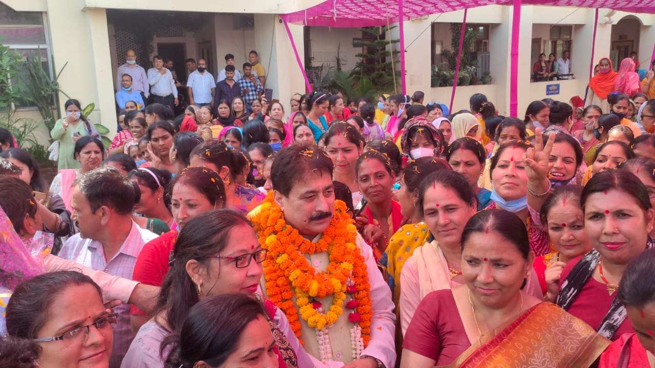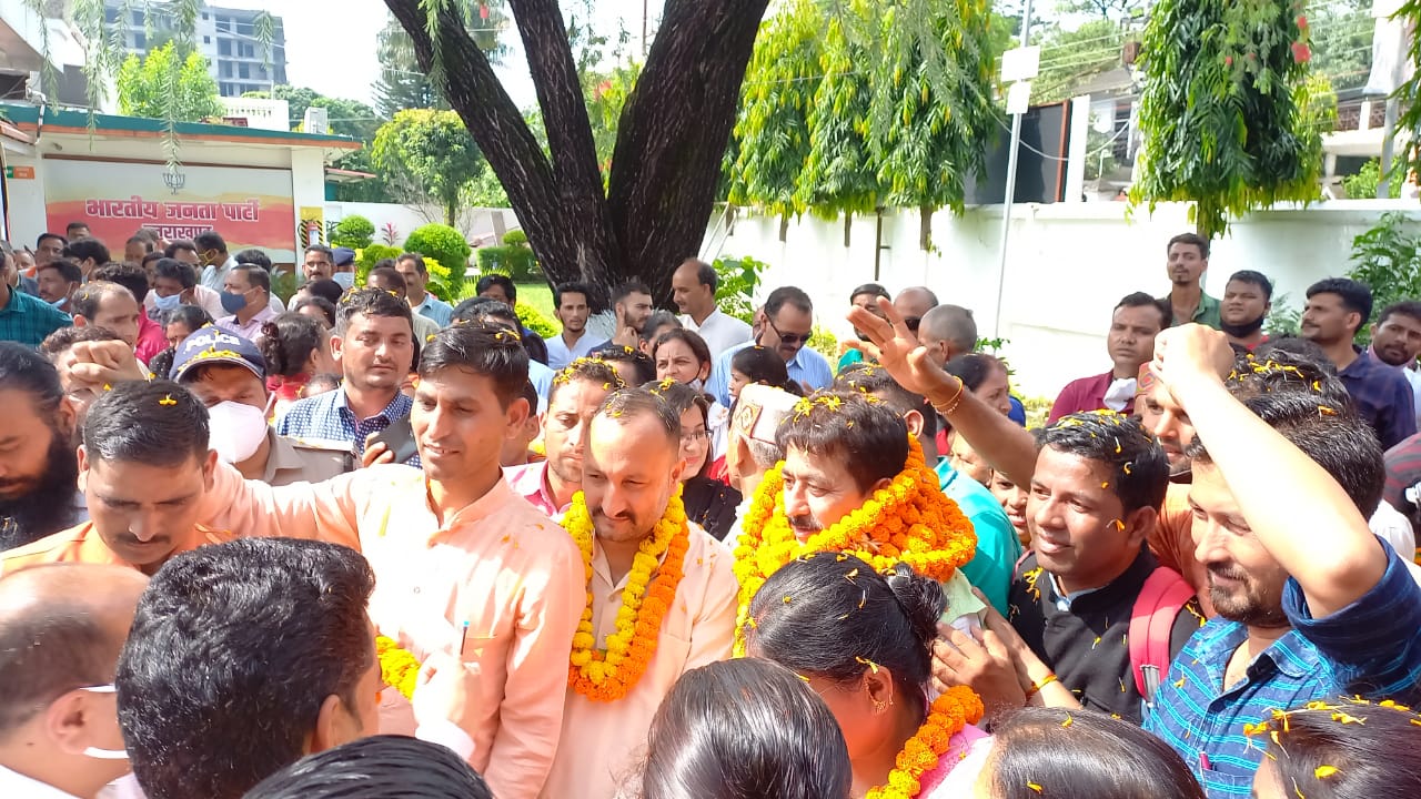 इस मौके पर भाजपा अध्यक्ष श्री मदन कौशिक आज खुशी का दिन है कि कांग्रेस के राजकुमार के साथ सैकड़ों कांग्रेस के पदाधिकारियों ने भाजपा की सदस्यता ग्रहण की है।