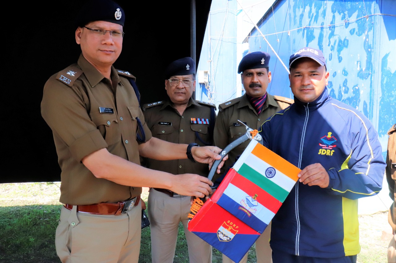 श्री मणिकांत मिश्रा, सेनानायक SDRF द्वारा आरक्षी राजेन्द्र नाथ को अफ्रीका महाद्वीप की सबसे ऊंची चोटी माउंट क्लीमेंजारो के सफल आरोहण हेतु किया फ्लैग ऑफ