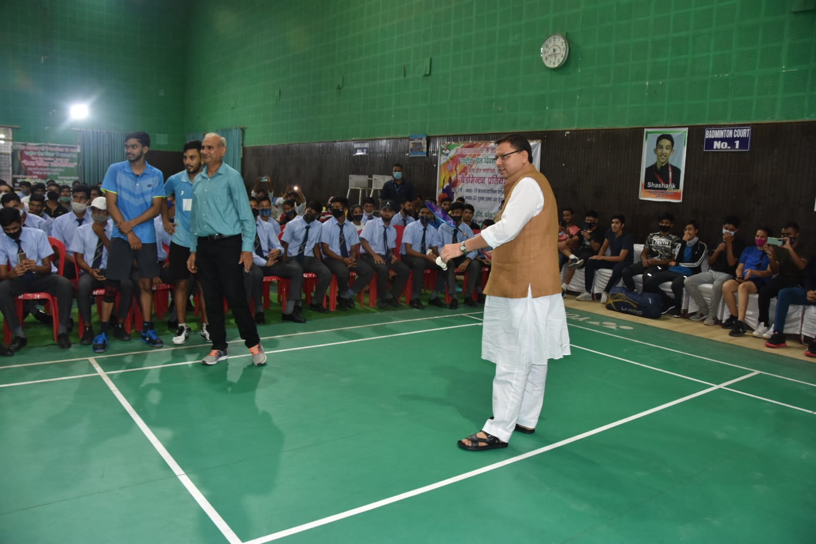 मुख्यमंत्री श्री पुष्कर सिंह धामी ने राष्ट्रीय खेल दिवस के अवसर पर परेड ग्राउण्ड स्थित बहुउद्देशीय क्रीडा हॉल में महाराणा प्रताप स्पोर्ट्स कालेज देहरादुन के उदीयमान खिलाड़ियों, टेबल टेनिस एवं बेडमिंटन प्रतियोगिता के विजेता खिलाड़ियों को सम्मानित किया। इस अवसर पर मुख्यमंत्री ने राज्य में खेलों के प्रति अधिक से अधिक युवाओं की भागीदारी सुनिश्चित करने के लिये अनेक घोषणायें भी की। मुख्यमंत्री ने स्वयं भी बेटमिंटन खेल कर प्रतियोगिता की शुरूआत की।